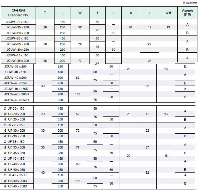 JCUW,JCUF 凸輪上滑板